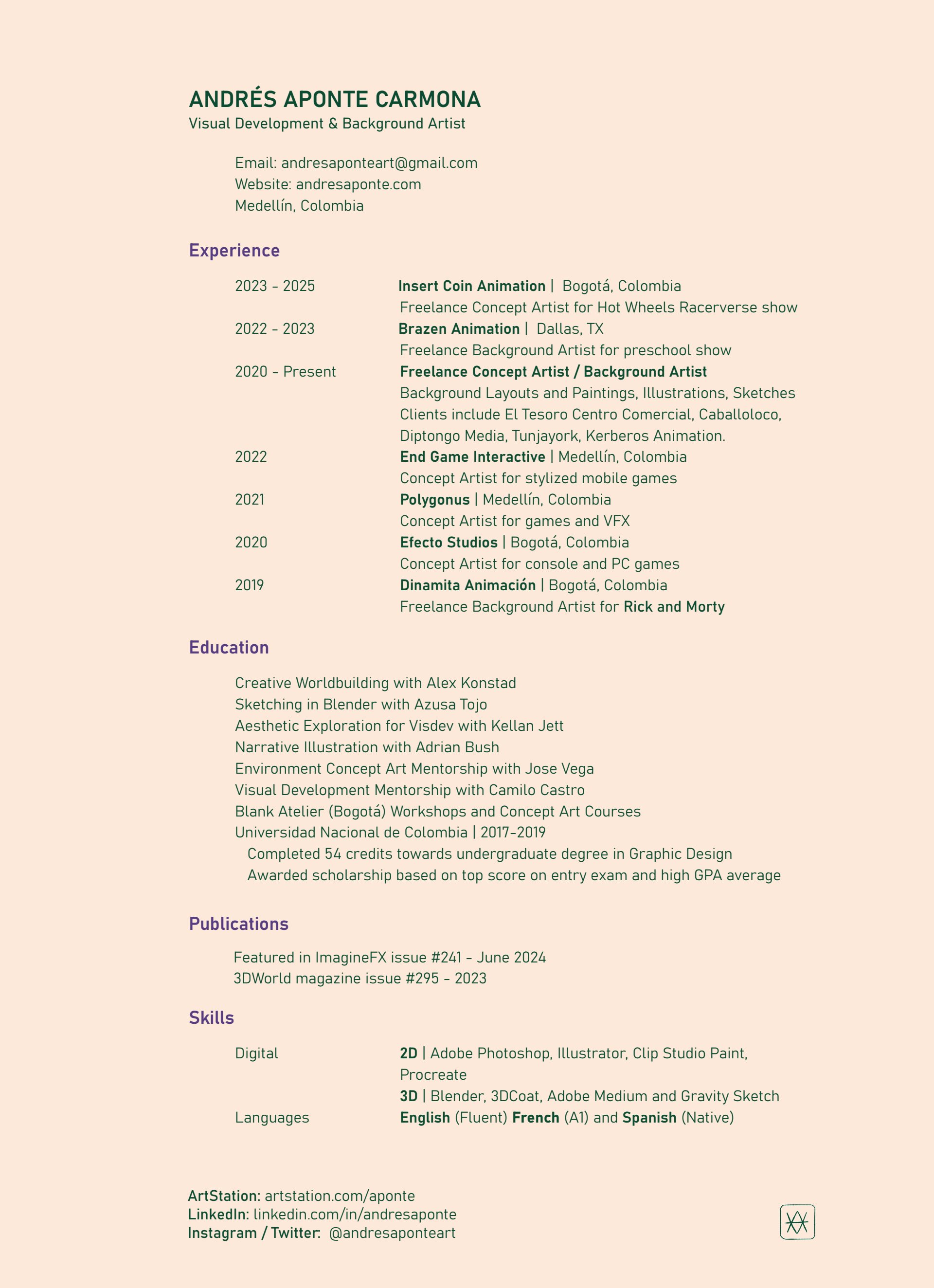 I have over 5 years of experience in the entertainment industry as a visual development artist with clients like Mattel, and as a background painter in projects like Rick and Morty.